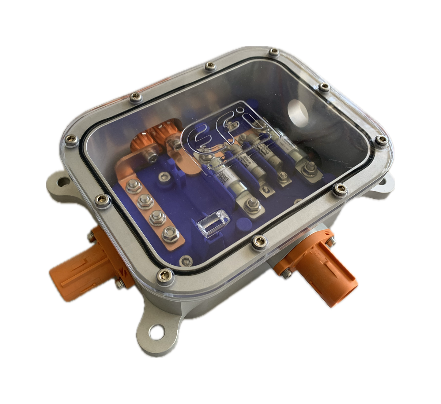 Located between the electrical vehicle powertrain (E-drive) and the vehicle’s auxiliary systems (heating & air conditioning, power steering, etc.), equipped with high-voltage (HV) fuses, the PDU distributes and protects the vehicle’s auxiliary systems against short circuits and over-currents. Generally integrated close to the E-Drive, the PDU is designed to be compact, lightweight and easily accessible, simplifying its installation and maintenance in case of fuse replacement.